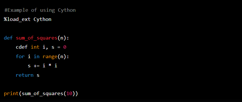 functools.lru_cache: For expensive functions that are called repeatedly with the same arguments, use the@lru_cachedecorator to memoize the results. This can provide a massive speedup by trading a small amount of memory for CPU time. - Consider Cython or Numba: When you’ve identified a small, CPU-bound function as a major bottleneck and algorithmic changes aren’t enough, tools like Cython or Numba can compile your Python code to near-C speeds.